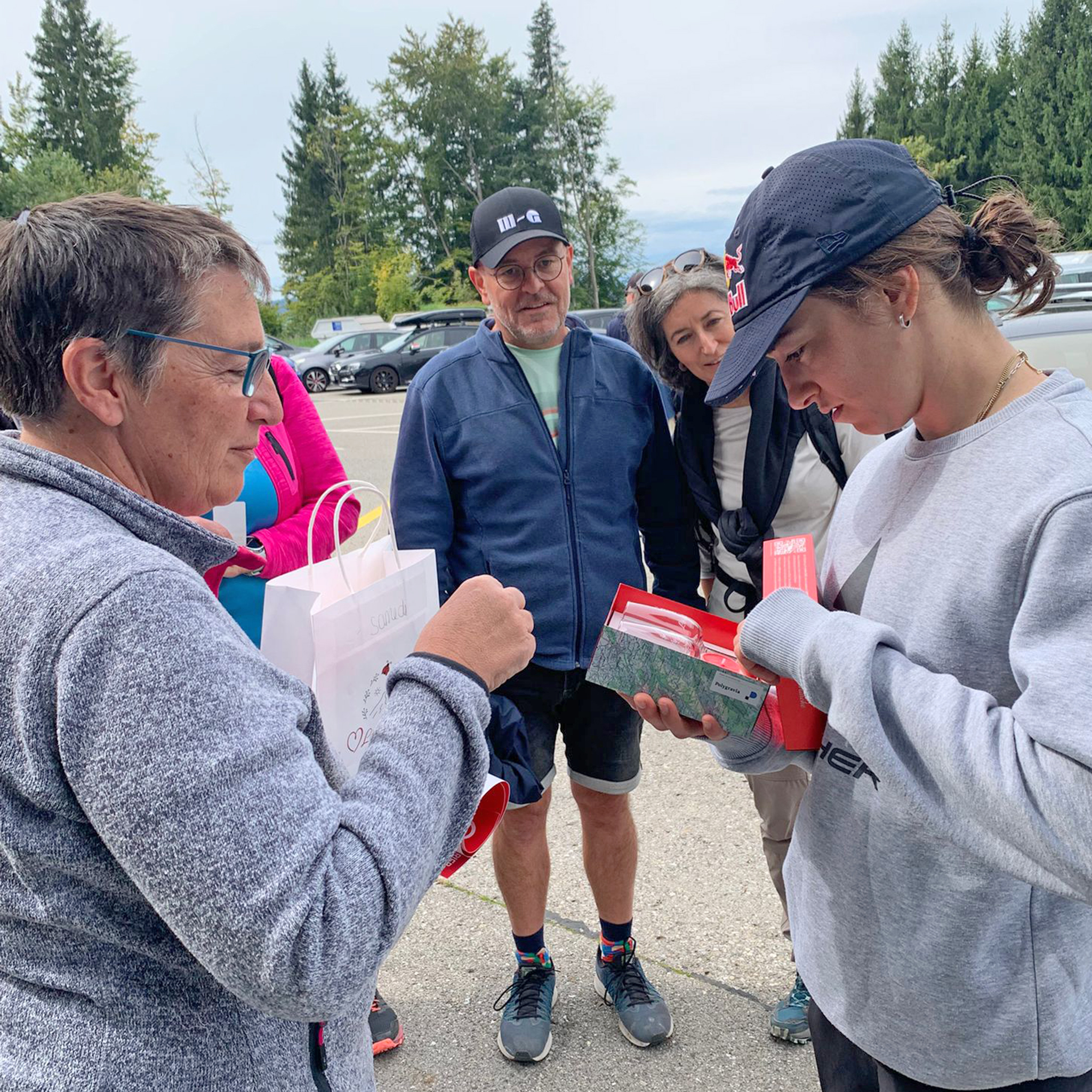 Sympathique rencontre avec la Gruyérienne Mathilde Gremaud, triple championne olympique et championne du monde de ski freestyle accompagnée de ses parents.